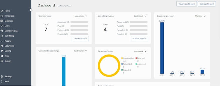 For client billing, Timesheet Portal can automatically generate invoices from the timesheets and expenses logged. There are also contractor pay features like self-billing invoices and pay run exports. The project analysis tools track budgets, productivity, and utilization across projects and employees.