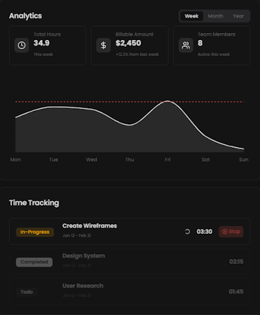- Time tracking: Easily log hours for tasks and projects with automated tracking, giving you deep insights into how your time is being spent across various activities.