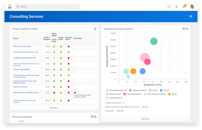 Workday Professional Services Automation manages all your finance, HR, and analytics. From single employee to large multinational enterprise, Workday Professional Services Automation helps you manage projects--and resources--by delivering a comprehensive suite of solutions that are easy to use and extensible to meet your needs.
