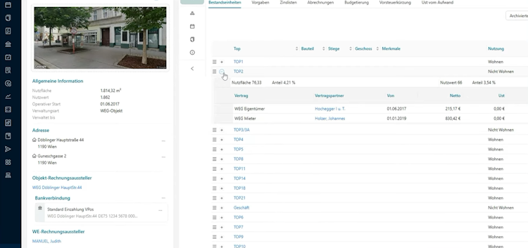 All business-critical processes in one system — no third-party tools needed: accounting & legally compliant billing (MRG/WEG), multi-bank interface (EBICS), document management at property level, automated dunning workflows, integrated tenant & owner portals, and MS Office 365 connectivity. AI-powered automation and self-healing detect and correct errors automatically.