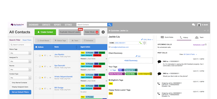 Big Purple Dot is a real estate CRM software that helps mortgage lenders and realtors collaborate with team members to capture and generate leads. The solution allows managers to track leads from various sources such as Zillow, Facebook, personal websites or landing pages, and more.