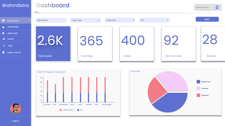Brahmastra is a cloud-based real estate CRM software designed to help businesses streamline lead management and enhance client interactions. The application allows users to manage the entire sales pipeline, from lead capturing to final sales.