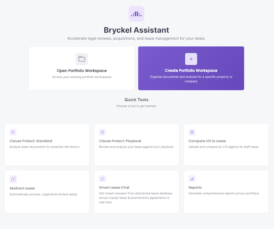 Bryckel supports AI lease review for real estate acquisitions and leasing with comprehensive due diligence, contract negotiation, and risk mitigation.
