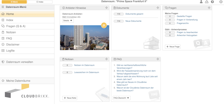 Cloudbrixx.DEAL is a data room for real estate transactions mainly for small and mid-sized companies. We are offering a secure online location where important documents related to a property are stored and shared among interested parties during a real estate transaction. These documents can include property records, lease agreements, financial statements, and other due diligence documents.