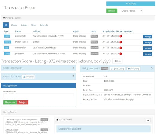 Datz RMS's built-in dashboard enables staff members to collaborate and manage leads, listings, pending deals, client relationships, and other daily real estate operations. With the mobile application, employees can track task progress, schedule client meetings, receive upcoming event reminders, and capture client communications via voice-to-text technology. It allows realtors to automatically send email-based feedback requests, price change notifications, and other transaction updates to clients via email.