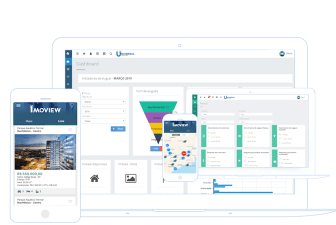 Imoview is software for real estate management, responsible for digitalizing operations and centralizing activities in an integrated environment. With this solution, it is possible to manage services, monitor the conversion rate of each broker, and access the history of negotiations.