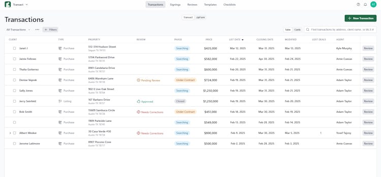 Real estate transaction management software