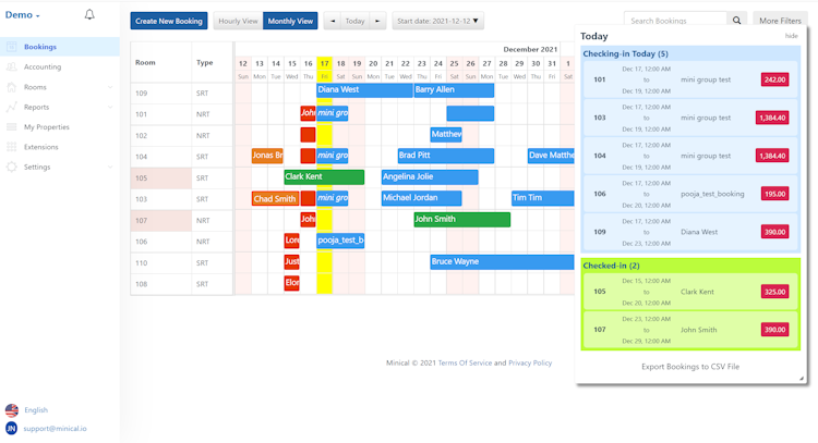 miniCal is an open-source property management software designed to help businesses in the hotel, hostel, vacation rental, apartment, car rental, and office space sectors deploy a bespoke solution for their operations by using a pre-made JSON template or by customizing their own. It lets teams build extensions using the Boilerplate extension through demo pages that showcase how to retrieve data from the database, how to store extension-specific options and settings in the options table, and how to store custom data in the Posts table.