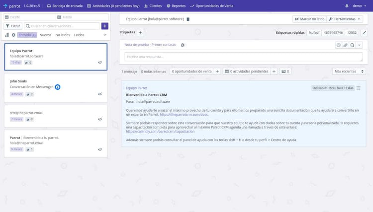 Parrot CRM is a CRM solution that includes features suck as task management, customer database, sales pipeline, and advanced sales reporting. This platform creates conversational sales experiences to answer questions, personalize business proposals, and humanize the relationship with customers to differentiate a business from competitors.