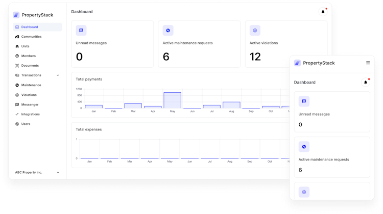 PropertyStack takes the complexities out of managing and HOA. We help HOA community managers make it easy to onboard all their communities, handle HOA payments, track violations and maintenance requests, and communicate out to all members.