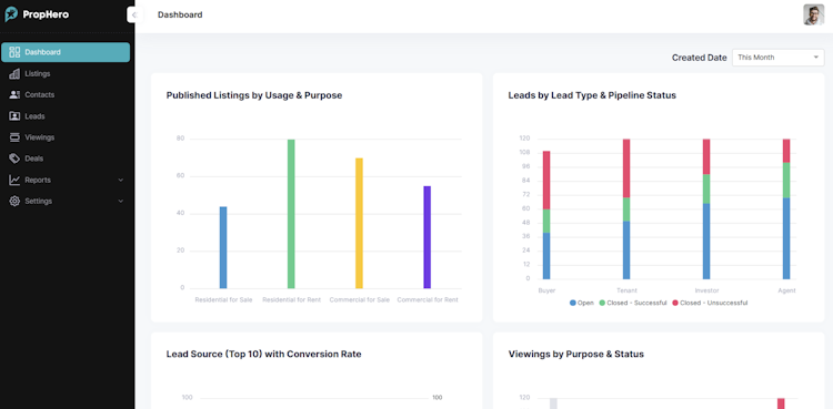 With PropHero, agents and managers have access to comprehensive reporting tools that offer data-driven insights into their business. These tools facilitate intelligent decision-making, helping agents and managers to identify opportunities and streamline their operations further.
