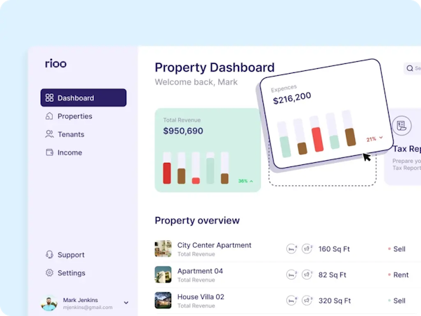 RIOO is a cloud-based property management platform built for modern real estate teams, property managers, landlords, and more that helps streamline operations and manage residential, commercial, and mixed use housing properties. From lease management and maintenance tracking to tenant communication and financial reporting, RIOO brings everything together in a unified dashboard.