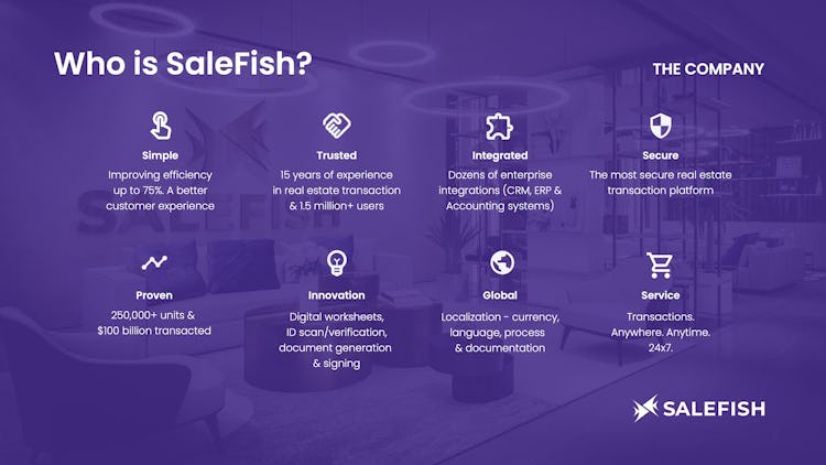 Salefish is a cloud-based real estate agency solution that provides a unique platform for channel agents and buyers to select real-time property availability and pricing, with added KYC functionality for secure transactions. SaleFish offers a streamlined and user-friendly experience, making contract exchanges via the vendor dashboard quick and effortless.