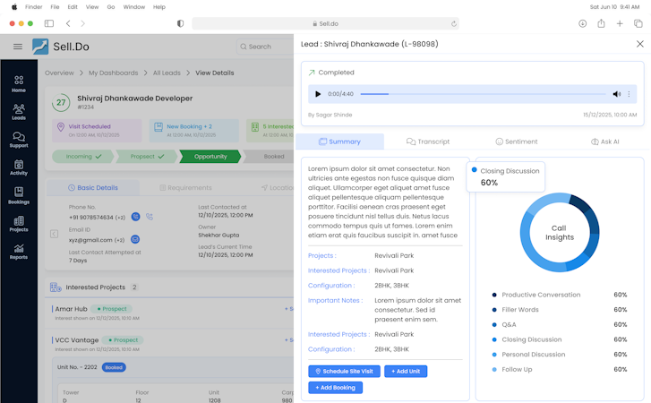 • Sell.Do manages leads in a secure system by auto-capturing leads from all sources, assigning them to a sales rep and tracking lead interactions with sales teams to derive performance reports.