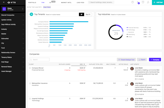 Founded with a mission to revolutionize commercial real estate through innovation, VTS is the industry's leading leasing and asset management platform. By centralizing all of their critical data and workflows in one place, VTS empowers landlords and brokers to better attract, convert and retain their most valuable asset - tenants. Over 10 billion square feet is managed on VTS 3 with a user base exceeding 34,000.