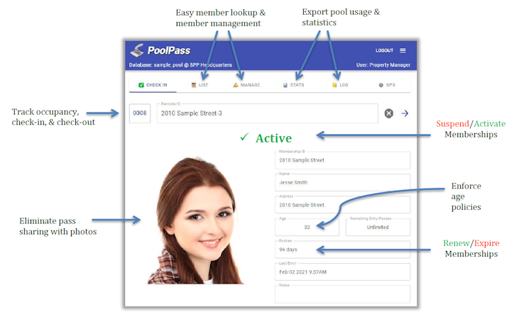 Access Granted Systems is used at HOA, apartment, swim club and community pools. Users can send photo ID passes, email electronic passes, process online applications, invoice/billing and more.