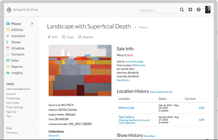 Artwork Archive is an inventory management software designed to help artists, collectors, and businesses organize, document, and securely store artwork and collections in a centralized repository. It offers a dashboard, which assists users with managing stock, contacts, galleries, pricing, and sales and creating labels, invoices, and inventory lists.