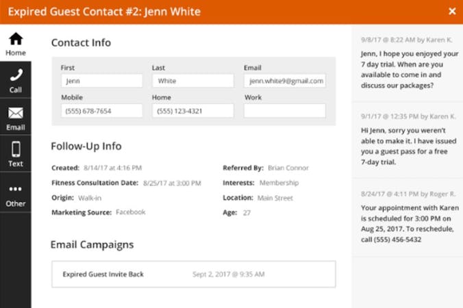 Club OS facilitates integration with various third-party systems such as HubSpot, Perkville, MotionSoft, and more. Gyms can also send appointment reminders to prospects via text messages.