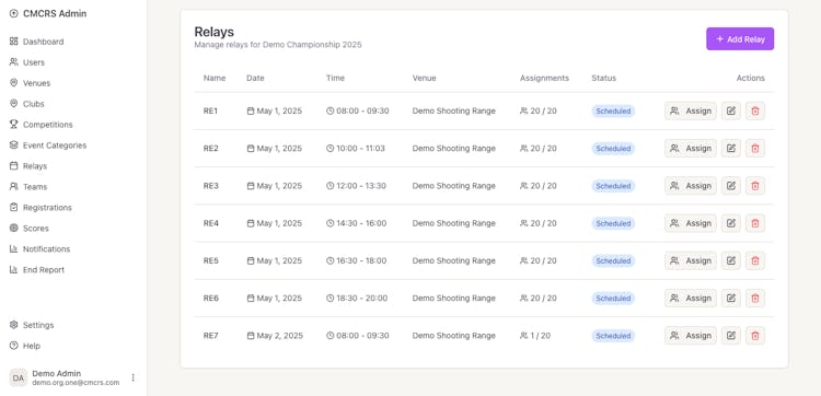 CMCRS is a comprehensive club management solution designed to streamline the organization and participation in shooting competitions. Catering to the needs of clubs, organizers, and competitors, this platform offers a user access system, which allows both shooters and administrators to log in and leverage the platform's capabilities. Shooters can utilize the platform to participate in upcoming competitions, while administrators can manage the entire competition lifecycle, from registration to results tracking.