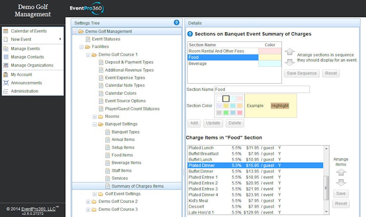 EventPro360 is a cloud-based golf course software designed to help businesses create custom dashboards to manage event-related operations. The platform enables administrators to edit and personalize drop down lists, service charges, and document templates on a unified interface.