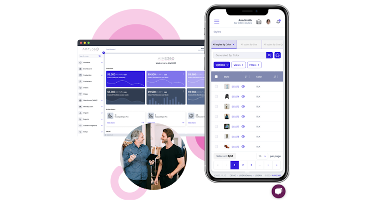 AIMS 360 is the #1 apparel software in the industry! Currently powering over 600+ manufacturers, wholesalers and importers of apparel, footwear, accessories and other fashion-related goods. This affordable fashion business ERP software gives you total control! Create efficiencies with complete production (PLM), omnichannel order management (OMS), inventory management & allocation, warehouse (WMS), invoicing, AR, dashboards, business intelligence, reporting and much more. Our cloud software reduces cost and utilizes the latest technology.