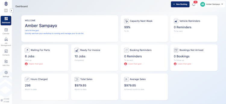 Helpful Dashboard: Provides critical insights into your workshops' workload and profitability, highlighting areas needing immediate attention.