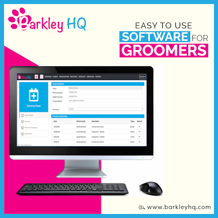 Barkley HQ makes it easy to see client and pet information like contact details and grooming notes.