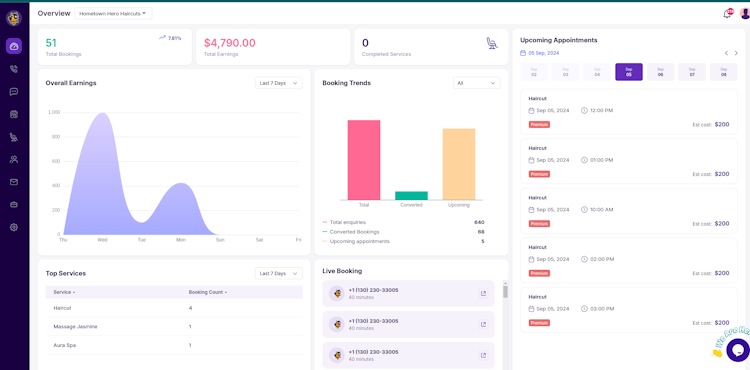 BookingBee.ai provides real-time business insights through a comprehensive dashboard, allowing owners to track customer engagement, service utilization, and other key metrics. The AI also takes an active role in nurturing client relationships, sending personalized emails with exclusive offers to transform one-time visitors into loyal, repeat customers. Additionally, the platform's automated appointment reminders and follow-up calls help minimize no-shows and late arrivals, optimizing the overall salon experience.