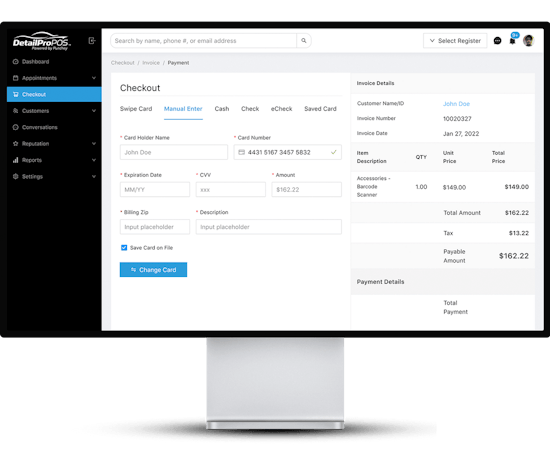 DetailProPOS supports dealership billing, eInvoicing, and recurring billing as part of the POS system. Estimates and quotes can be generated and sent to customers, and converted into invoices once work is agreed or completed. The card vault allows users to securely store customer cards on file to streamline billing, and digital tips can be collected during customer signature capture. DetailProPOS also offers an inventory system which automatically notifies users of low stock to enable prompt reordering.
