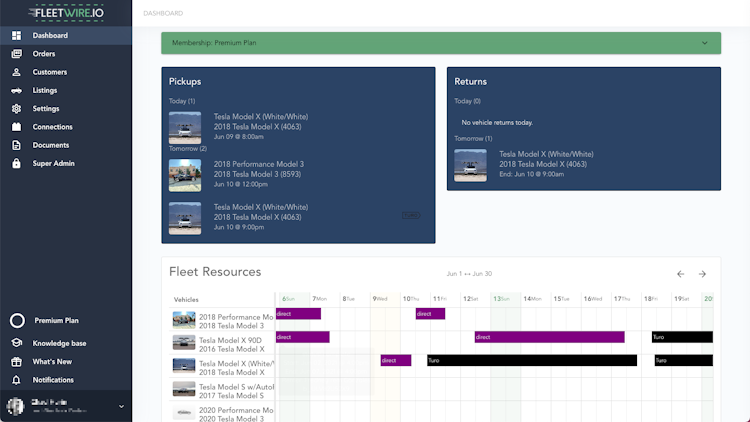 FleetWire is a comprehensive reservation platform that enables individuals to oversee their direct and car-sharing automobile rentals from a single location. The system features a variety of useful tools, including automated ID verification, digital rental agreement signing, automated messaging, and calendar synchronization with popular car-sharing platforms such as Turo, among other capabilities.