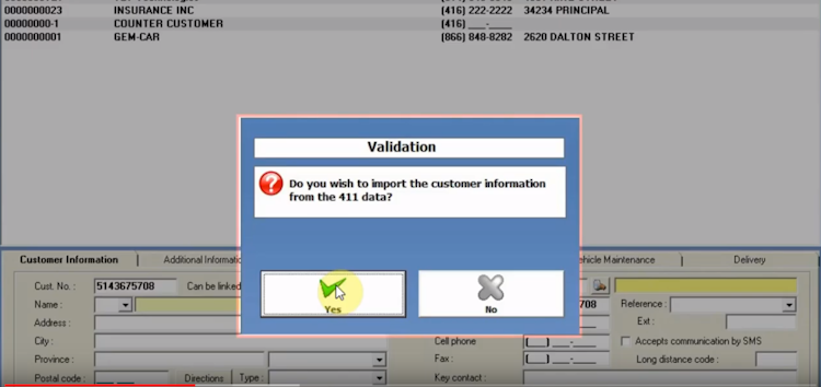 GEM-CAR's POS feature provides customer identification for important data including a vehicle identification (VIN) decoder, inventory availability, estimate calculation, and a color coded visual interface for grouping relevant data such as estimates, parts orders, and transaction history. Customer information can be imported through integration with existing CRM systems, or via database conversion, including customer data, vehicle history, and inventory.