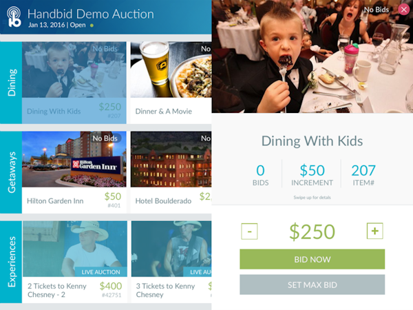 Handbid’s user interface