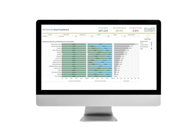 Gain visibility and take action with our quality insights software. Our fresh food inspection app and analytics dashboards capture quality at various points in the supply chain, including field, shipping point, dispatch, and receiving with a clear picture of supplier, commodity, and location performance.