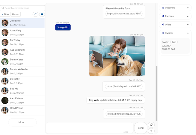 Two-Way Communication: Stay connected with clients through real-time two-way chat, where you can share updates, photos, videos, and notes effortlessly. Automated reminders and notifications keep everyone informed and reduce no-shows, ensuring smooth communication and a better overall experience for your clients.
