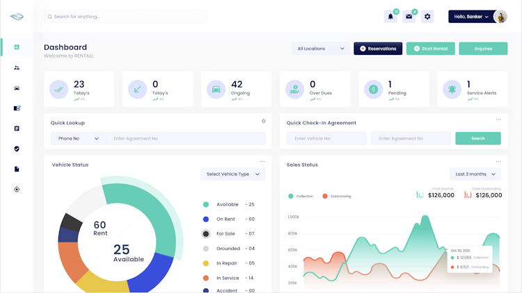 • Efficient Tracking: RENTALL empowers users to efficiently monitor vehicle availability throughout the day and gain valuable insights into monthly sales at each rental location.