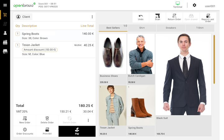 For physical stores, Openbravo offers a single solution across all retail touchpoints, including fixed tills, mobile devices and self-checkout terminals, which eliminates the need for local store servers, greatly simplifying the complexity and costs associated with the technological infrastructure of each store. With built-in features such as access to order history across channels, tiered loyalty programs, recommendations and a flexible discount engine.