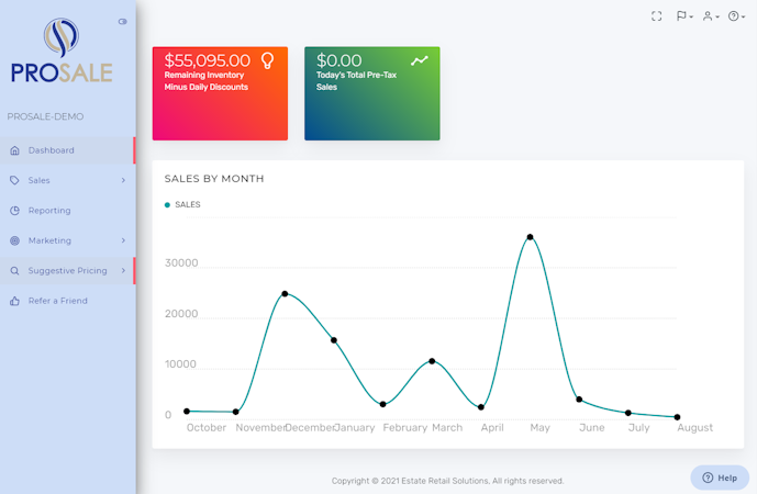 PROSALE is a cloud-based estate sale management software designed to help businesses streamline point of sale (POS) transactions, inventory management, barcode scanning, and other operations on a unified platform. Using the integrated eCommerce solution, professionals can sell items online, process transactions, manage purchase orders, print receipts, and configure workflows.