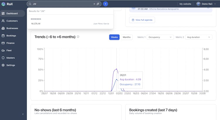 RaX Mobility Platform serves as a comprehensive management system for small and mid-sized vehicle rental operations. It delivers a digital-first framework for coordinating bookings, fleet oversight and customer engagements across car, motorcycle and van rental services. This solution targets operators that seek to modernize their procedures without interrupting routine business functions and maintain a focus on customer satisfaction alongside operational efficiency within mobility and tourism contexts.