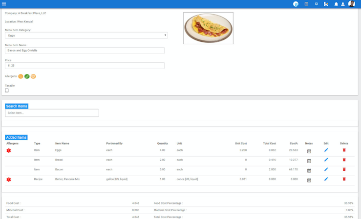 Recipe Costing Software is a cloud-based recipe costing and restaurant management solution designed to assist businesses with cost control, inventory management, sales data tracking, and more. Recipes, sub-recipes, and menu items can be costed, and users can manage allergy and nutrition information for all of their ingredients and finished goods.