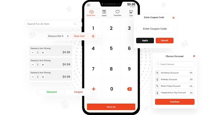 Payment processing functionality accepts credit cards, debit cards, and mobile payments with secure and efficient transaction handling. Text to pay capabilities generate payment links for remote transactions and invoicing features support streamlined billing processes. Receipts can be customized with branding elements and promotional tools facilitate the creation and management of discounts, coupons, and special offers. Offline operation ensures continuity of transactions without internet connectivity and automatically synchronizes data when a connection is restored. Integration of online orders incorporates e-commerce transactions into the unified workflow.