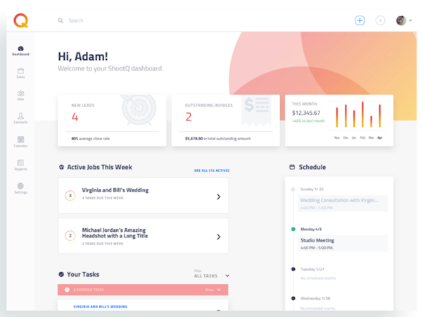 ShootQ is a cloud-based photography studio management software designed to help photographers and other creatives automate studio management tasks with features including job scheduling, lead progress tracking, bill collection, customizable surveys, reporting, a client portal, and more. As a cloud-based solution, ShootQ gives users the flexibility to manage their business anytime, anywhere, via any internet-enabled device.