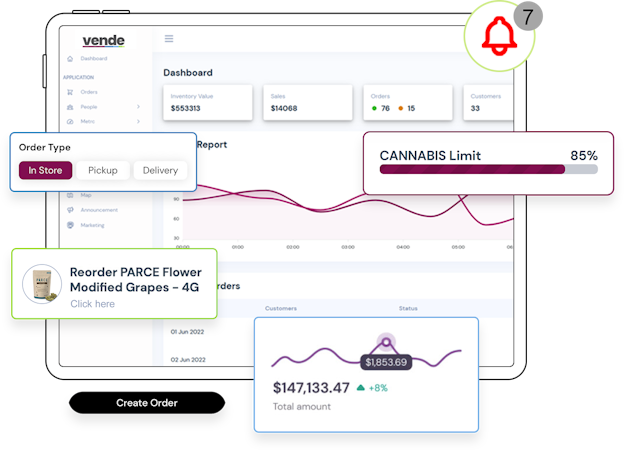 Dispensary managers can place and track wholesale product orders directly in the POS. The system provides low inventory alerts and suggested reorders based on sales data and location. Delivery route optimization and driver dispatching ensure efficient cannabis deliveries.