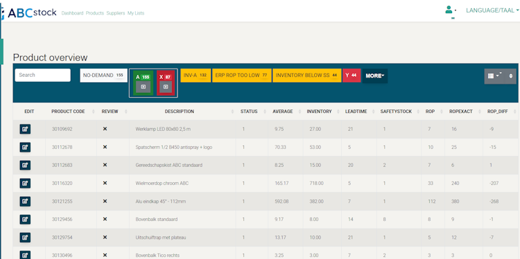 ABCstock is an AI-powered inventory optimization system that enhances inventory management through advanced categorization and forecasting capabilities. The system employs ABC analysis to automatically classify items based on their importance to company turnover, ensuring that critical items receive appropriate attention while obsolete items are identified for removal. The self-learning artificial intelligence technology evaluates sales order history nightly, recalculating statistical forecasts and updating them within connected ERP systems, allowing businesses to maintain accurate demand predictions while accommodating manual adjustments for exceptional events.