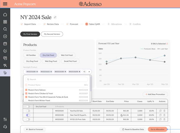 Adesso AI is a trade promotion management software purpose-built for CPG companies. It offers a suite of AI-powered tools to help CPG teams effectively forecast, plan, execute, analyze, and optimize trade promotions and spend.