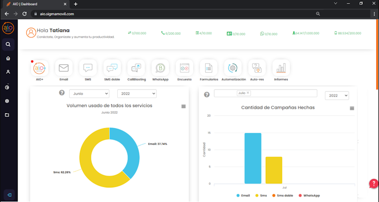 Key features of AIO include email marketing, data import, SMS marketing, call blasting, communication strategy metrics and more. Administrators can design online campaigns using a drag-and-drop interface and segment target users according to various categories, such as quality, quantity, and more. It also lets managers configure email workflows, schedule messages, and send feedback surveys to customers.