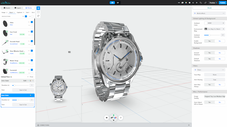 The platform operates on a proprietary WebGPU rendering engine that delivers high fidelity three-dimensional visualization while maintaining fast page loading and performance on mobile devices. The configurator manages complex product variants, supporting configurations from a single option to over one million combinations, complete with pricing rules and inventory logic. It features ray traced lighting for photorealistic rendering, including refraction effects for jewelry, true to life fabric textures for furniture, detailed decal placement for sports equipment, and high resolution surfaces for apparel. A zero weight initial load architecture automatically optimizes heavy assets for immediate web delivery and sustains sixty frames per second performance. Real time variant syncing, dynamic pricing calculations, and direct to cart logic connect customer configurations directly to the checkout workflow. Clients gain access to a management dashboard for ongoing control of three-dimensional experiences, enabling independent adjustments of configurations, pricing rules, and product options after deployment.