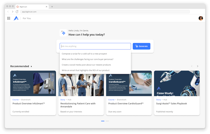 Built on Showpad’s trusted content and account collaboration foundation and enhanced by Bigtincan’s AI-driven readiness — Brainshark, AuthoringAI, RolePlayAI, Genie Assistant — leading brands like Nike, Winnebago, and Clorox trust us to prepare, engage, measure, and continually improve every customer interaction.