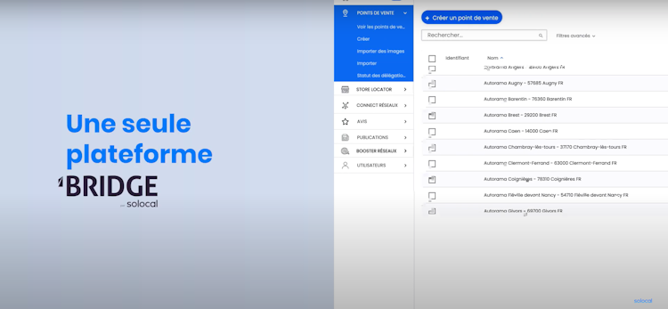 BRIDGE, is the proprietary platform of Solocal which allows you to manage your Store Locator as well as your Presence Management.