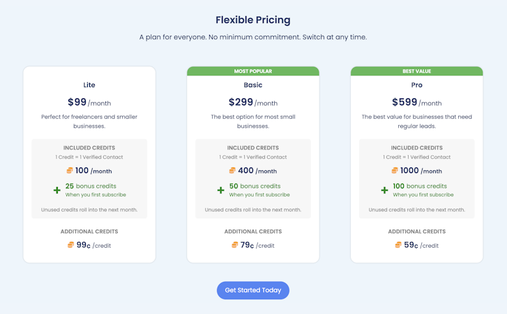 With a partnership with Zerobounce, Coldlytics guarantees the quality of their leads and offers credit for any bounce or imperfect lead encountered.