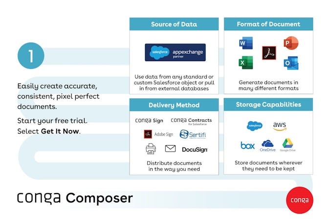 Conga Composer: Automate Document Generation with Speed, Accuracy, and Scale Conga Composer is a leading document generation solution that empowers businesses to create, manage, and deliver error-free, on-brand documents—anytime, anywhere. Whether you're building proposals, contracts, invoices, or presentations, Composer integrates seamlessly with your CRM and ERP systems to automate document workflows with precision and speed. Designed for scalability and flexibility, Conga Composer supports complex content like charts, dashboards, tables, rich text, images, custom fonts, watermarks, and global currencies. Its powerful automation capabilities allow for batch document generation, scheduled sends, and workflow triggers, reducing manual effort and boosting productivity across departments. Composer’s REST APIs and cross-platform integration capabilities make it easy to connect with any application, portal, or website. This ensures that data from multiple sources can be unified into a single, accurate document—tailored to your business needs and branding standards. Whether you're generating one document or thousands, Conga Composer delivers consistent results that help teams move faster and smarter. Sales teams use Composer to create personalized proposals and quotes that win deals. Legal departments rely on it to generate compliant contracts and agreements with confidence. Operations and project managers streamline recurring documentation and reporting. Customer success teams deliver tailored communications and performance summaries at scale. No matter the use case, Conga Composer adapts to your workflow and business goals. With a robust template library, users can choose from pre-built templates or customize their own to match brand guidelines and document standards. This not only saves time but ensures every document reflects your company’s professionalism and identity. Composer also supports conditional logic, dynamic content, and data-driven formatting, giving users full control over how documents are assembled and presented. Trusted by millions of users—including six Fortune 10 companies—Conga Composer is built to handle high-volume document generation with ease. Its enterprise-grade performance, security, and reliability make it a go-to solution for organizations looking to scale their document processes without sacrificing quality or accuracy. Key benefits include: Scalability: Supports large templates, multiple file outputs, and high-volume document assembly. Flexible APIs: REST APIs enable seamless integration with any system or platform. Cross-Platform Integration: Combines data from various sources for unified, accurate documents. Advanced Automation: Automates document generation, batch sends, and workflow triggers. Brand Consistency: Ensures every document aligns with your company’s standards and identity. Industry Leadership: Trusted by global enterprises across industries. Conga Composer is more than just a document generation tool—it’s a strategic asset that helps businesses accelerate operations, improve customer experiences, and drive results. Whether you're a fast-growing startup or a global enterprise, Composer delivers the speed, accuracy, and flexibility you need to stay ahead.